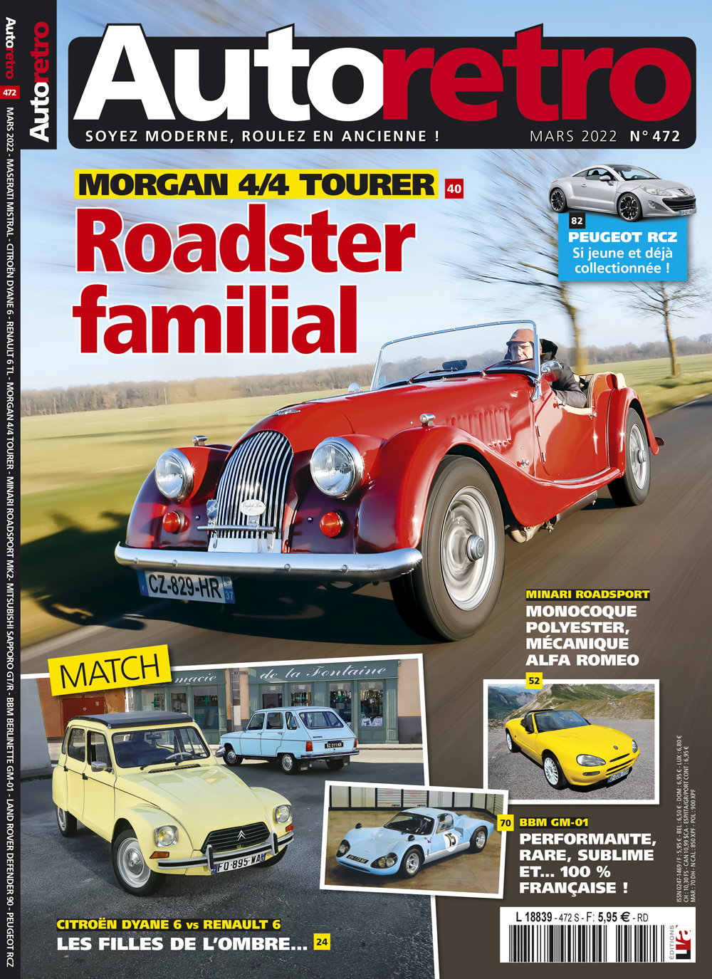 Les amateurs d’autos françaises sont gâtés avec le n°472 d’Autoretro : match amical opposant une Citroën Dyane 6 à une Renault 6 TL, Vrai prix consacré aux Peugeot RCZ, essai d’une rarissime et sublime BBM GM-01 et la suite des records de la Renault 40 CV à Montlhéry ! Les étrangères ne sont pas oubliées pour autant : Maserati Mistral, Morgan 4/4 Tourer, Minari (kit-car anglais à mécanique d’Alfa Romeo), Triumph TR3A, Mitsubishi Sapporo GS/R et Land Rover Defender 90 “plus neuf que neuf”. Enfin, la cote est consacrée aux autos dessinées par Giguiaro et le pilote belge Claude Dubois nous parle de son incroyable carrière.